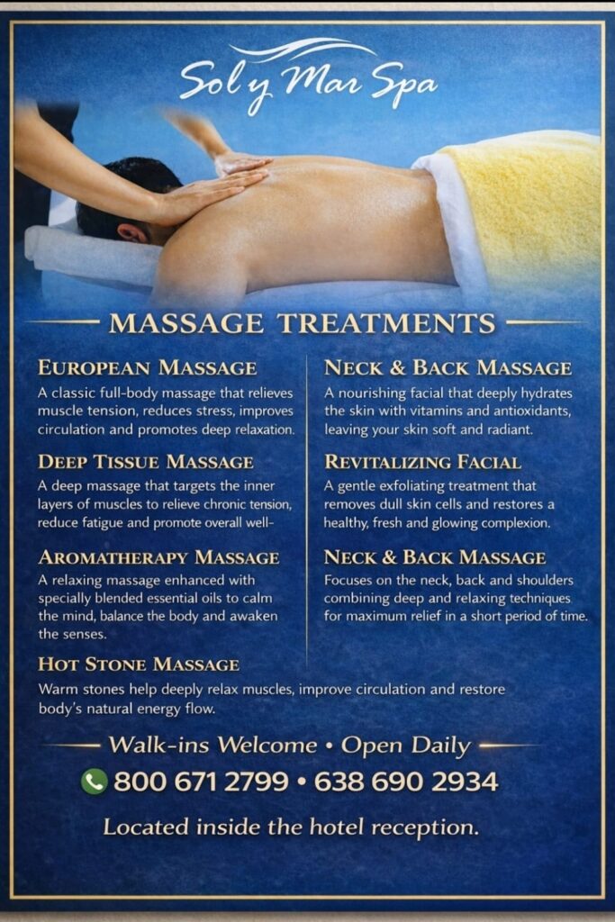 Las Palmas Puerto Peñasco Mexico resort is the perfect place to unwind —especially at Las Palmas Sol y Mar Spa, one of the most relaxing beachfront spas in Puerto Peñasco. Step into relaxation with our new offer: enjoy a rejuvenating one-hour European Massage and a hydrating facial for only $75. At Sol y Mar Spa Mexico, both treatments are designed to leave you refreshed, relaxed, and radiant—all at unbeatable prices. Discover why we’re among the top luxury spas in Rocky Point, offering the best in resort massage and wellness. experiences.